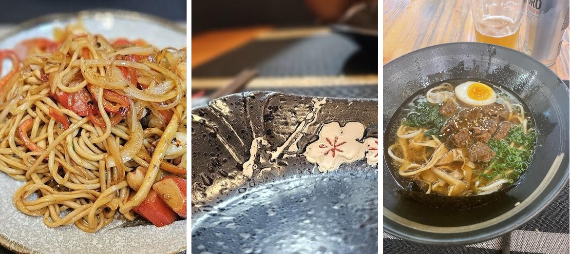 Brodo di ossa di maiale e pollo (ovo, surimi, germogli di soia, tempura di gamberi, carote, cipolline verdi )